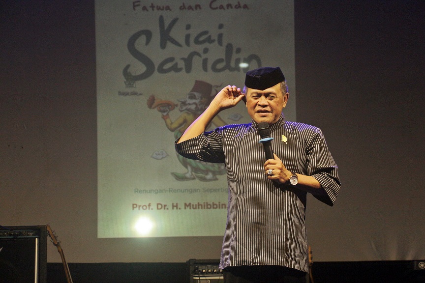 Pelawak Kirun saat tampil pada acara puncak Dies Natalis UIN Walisongo Semarang ke 49 di GSG kampus 3 UIN Walisongo, Sabtu, 6 Maret 2019. Foto:Amanat.id